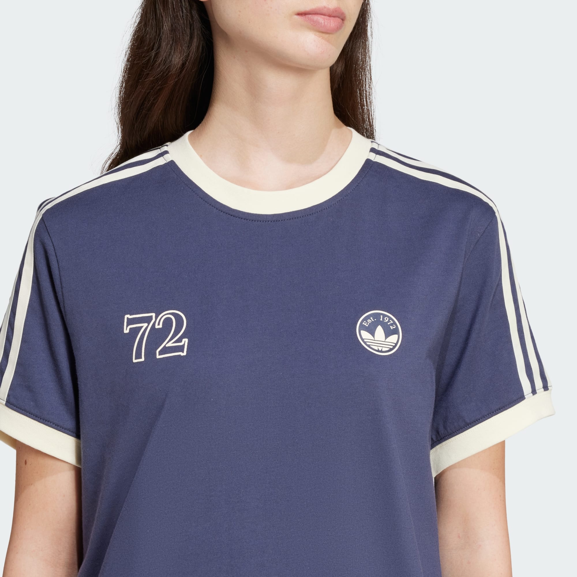 Dieses Model ist 175 cm groß und trägt Größe S. Der Brustumfang beträgt 75 cm und der Taillenumfang 64 cm.