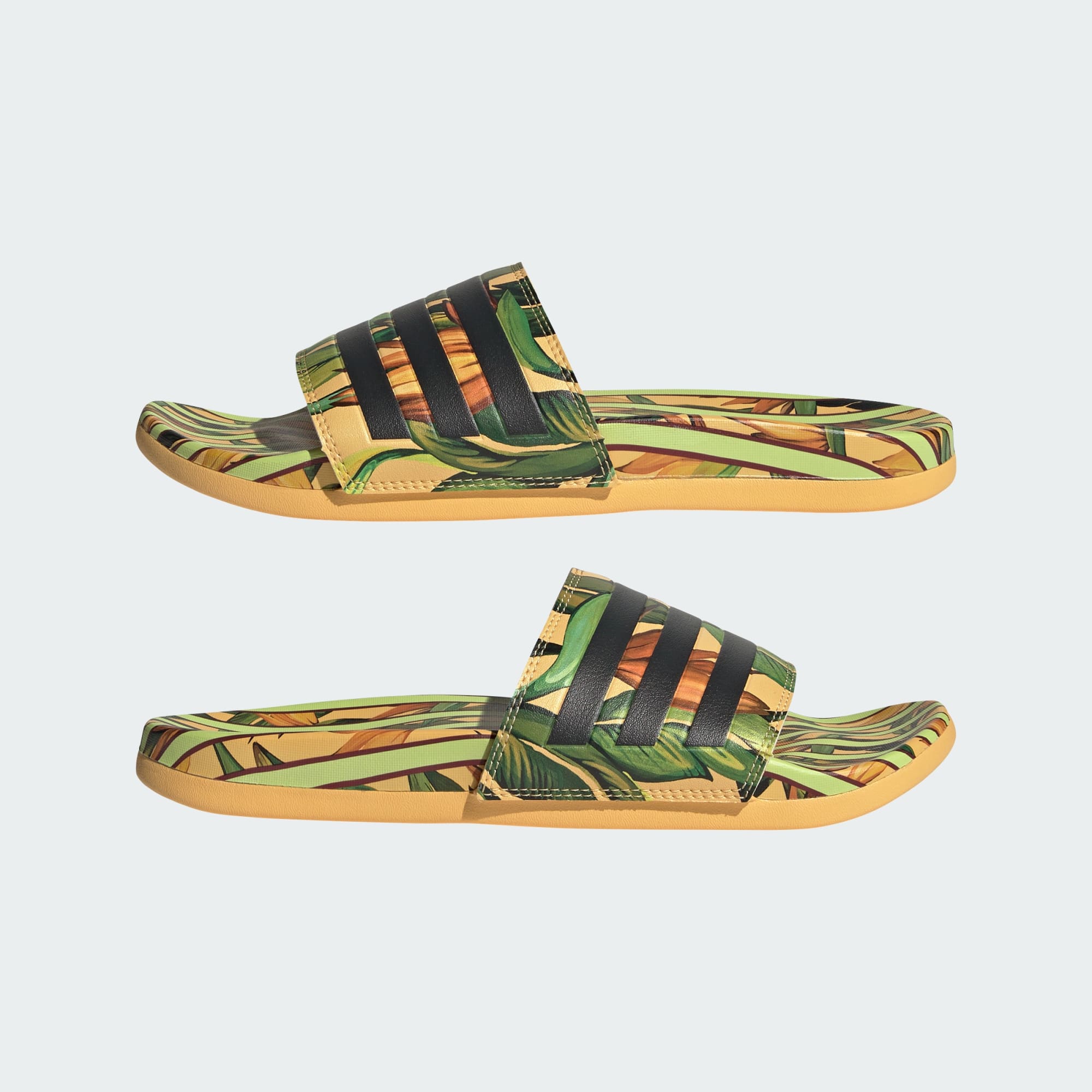 Erlebe Komfort pur. Diese vielseitige adidas Adilette kommt mit bunten, knalligen Prints des brasilianischen Labels FARM Rio und versprüht lässige Vibes. Außerdem garantiert das vorgeformte Fußbett lang anhaltenden Tragekomfort. Das Design kommt mit den 3-Streifen am Riemen zudem ganz klassisch daher.