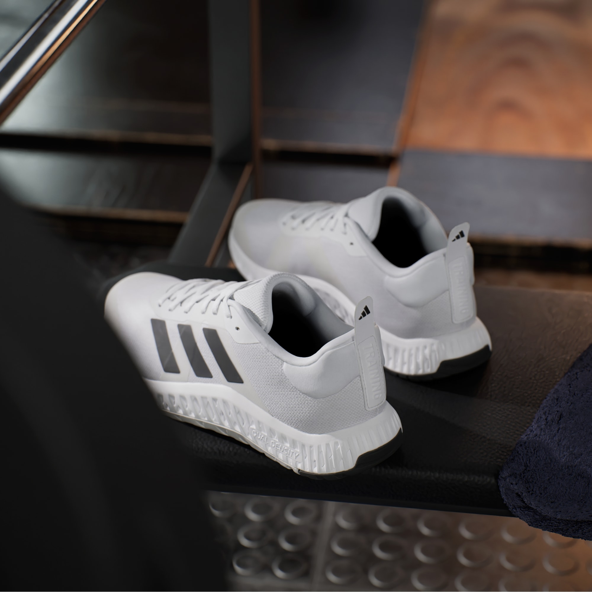 Wenn du für dein Fitnesstraining bereit bist, sind diese adidas Schuhe genau das Richtige für dich. Sie sehen gut aus und bieten die nötige Stabilität, damit du dich im Fitnessstudio sicher fühlst, wenn du neue Geräte ausprobierst oder das Hanteltraining erlernst. Das Knit-Obermaterial ist weich, atmungsaktiv und liegt gut an. Die Dual Density-Zwischensohle, mit festerer EVA-Außenseite und weicherer EVA-Innenseite, sorgt für stabile Balance ohne Abstriche beim Komfort. Die insgesamt flachere Form bietet ein sicheres Tragegefühl. So kannst du dich auf deine Form konzentrieren. Das Obermaterial besteht zu mindestens 50 % aus recycelten Materialien. Dieses Produkt ist nur eine unserer Lösungen im Kampf gegen den Plastikmüll.