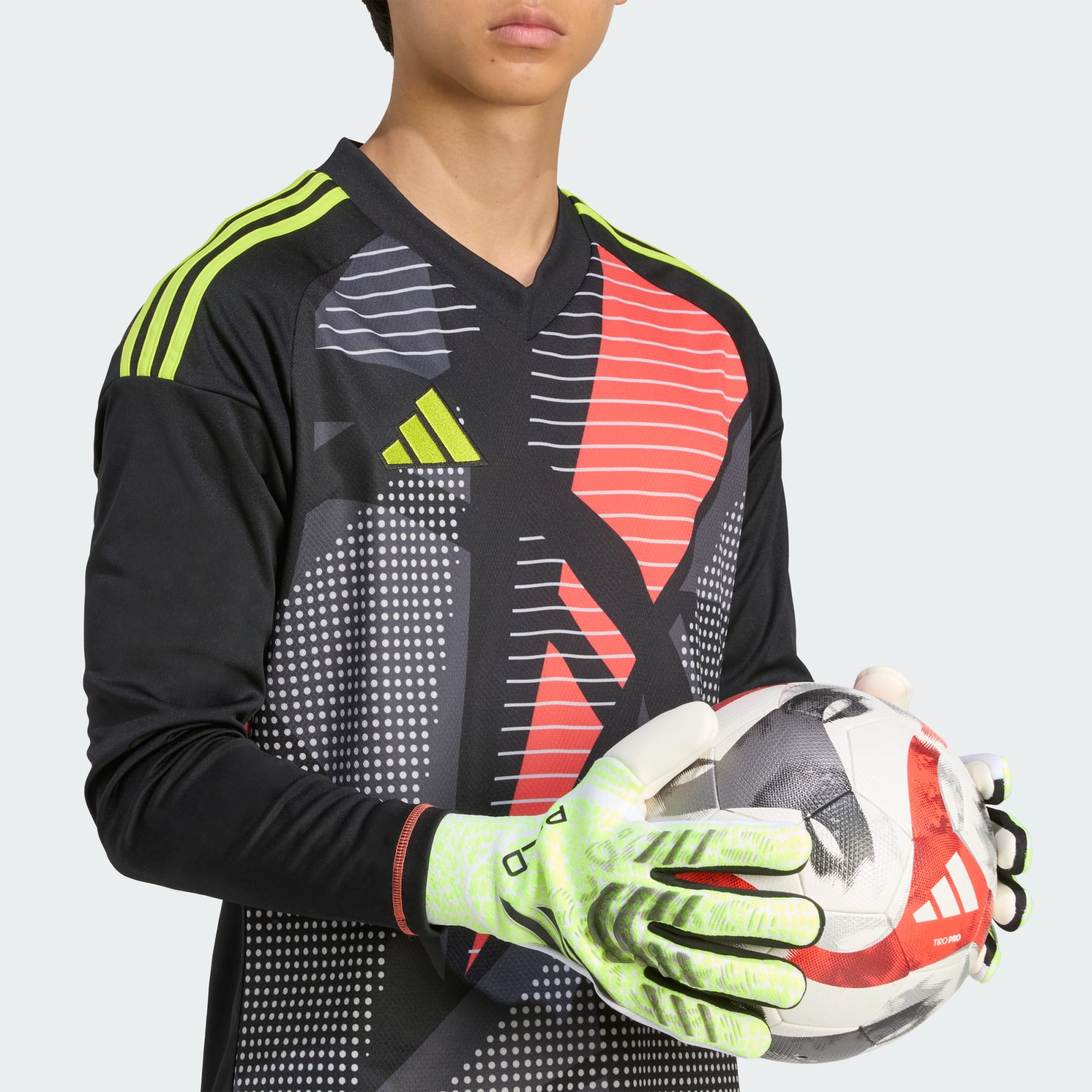 Mit diesen adidas Predator Pro Torwarthandschuhen hältst du jeden Schuss. Sie wurden für herausragende Leistungen am Spieltag entwickelt und verfügen über griffige URG 2.0 Latex-Handflächen und einem eng anliegenden, negativen Fingerschnitt. Der anpassbare gewirkte Handrücken mit Silikon-Elementen für präzises Wegschlagen rundet das Design ab. Ein riemenloser Verschluss sorgt für eine feste und gleichzeitig natürliche Passform am Handgelenk.