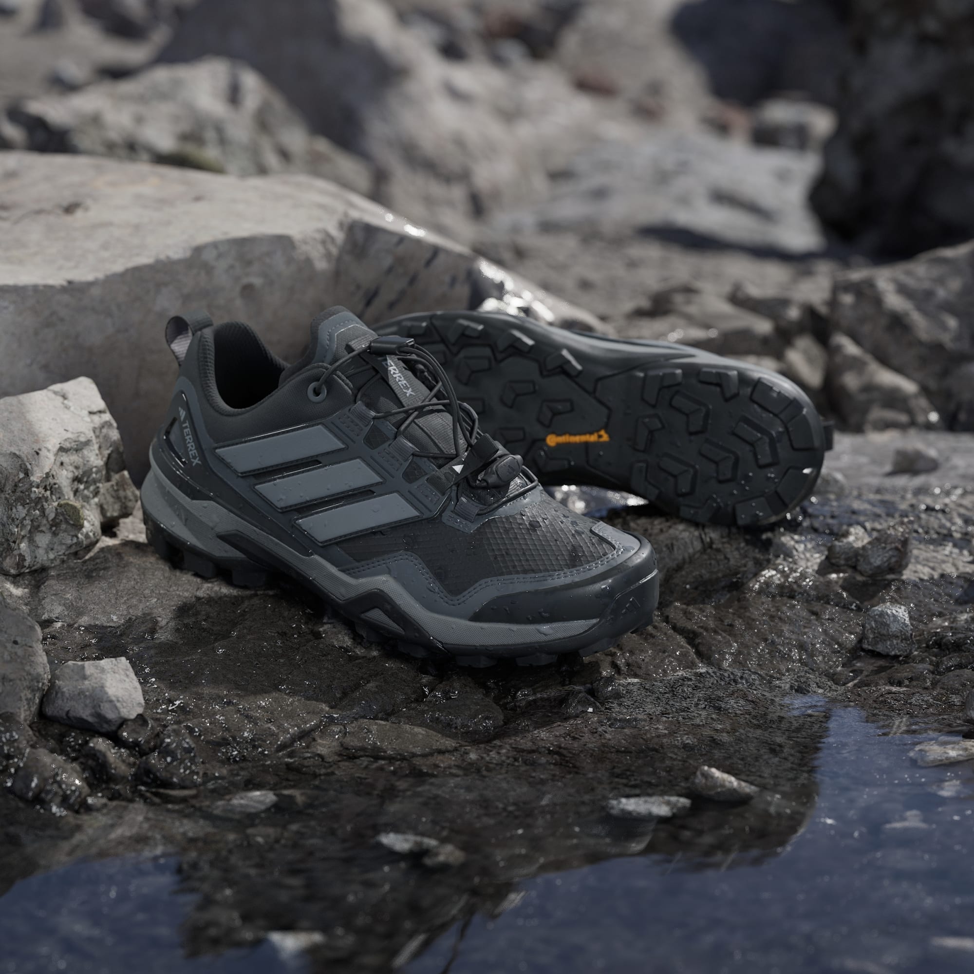 Die Continental™ Gummiaußensohle liefert Grip bei nassen und trockenen Bedingungen, während die biegesteife Stability Plate für Stabilität im Mittelfußbereich und ein reaktives Abrollen sorgt. Die Speedlaces können individuell und je nach Gelände eingestellt werden.