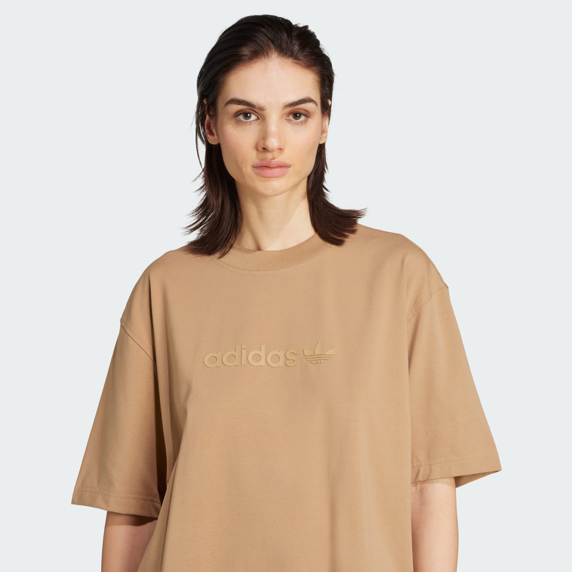This adidas tee makes comfort look good. It's cut for a loose, drapey fit that keeps your style laid-back and easy. The soft single jersey fabric moves with you, so you're all set for whatever the day brings your way. A tonal adidas Trefoil logo on the chest adds a subtle, sporty touch.