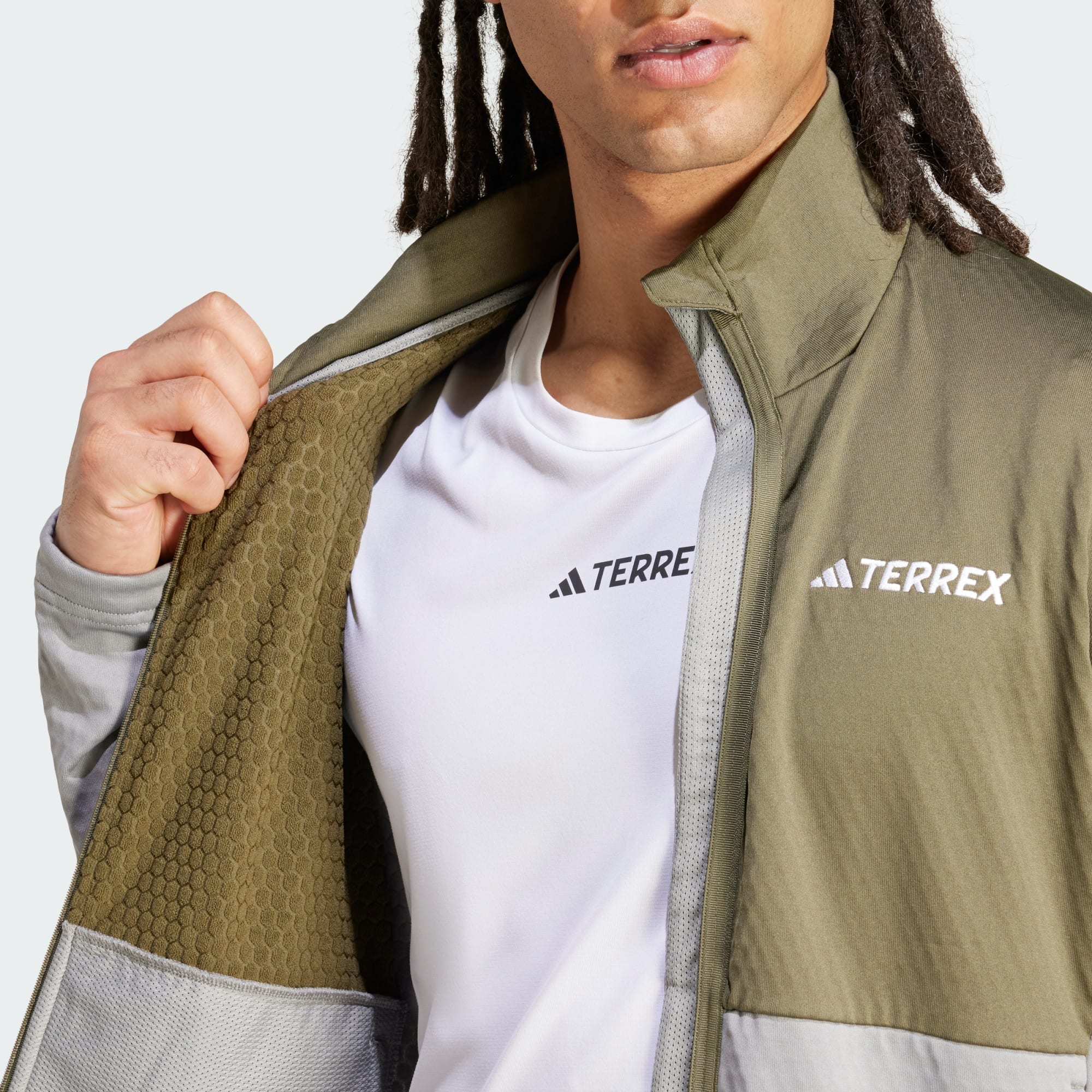 Designed for adventures big and small. This adidas Terrex fleece jacket has front zip pockets for easy access when you're wearing a backpack. If you're staying close to home, just throw it on and go. Made with Terrex honeycomb Flooce fabric, it wicks away moisture and lets your body breathe without sacrificing warmth. Lightweight and streamlined, it layers comfortably under your outer shell. And when the weather warms up, it won't take up much space in your bag.Made with a series of recycled materials, and at least 70% recycled content, this product represents just one of our solutions to help end plastic waste.