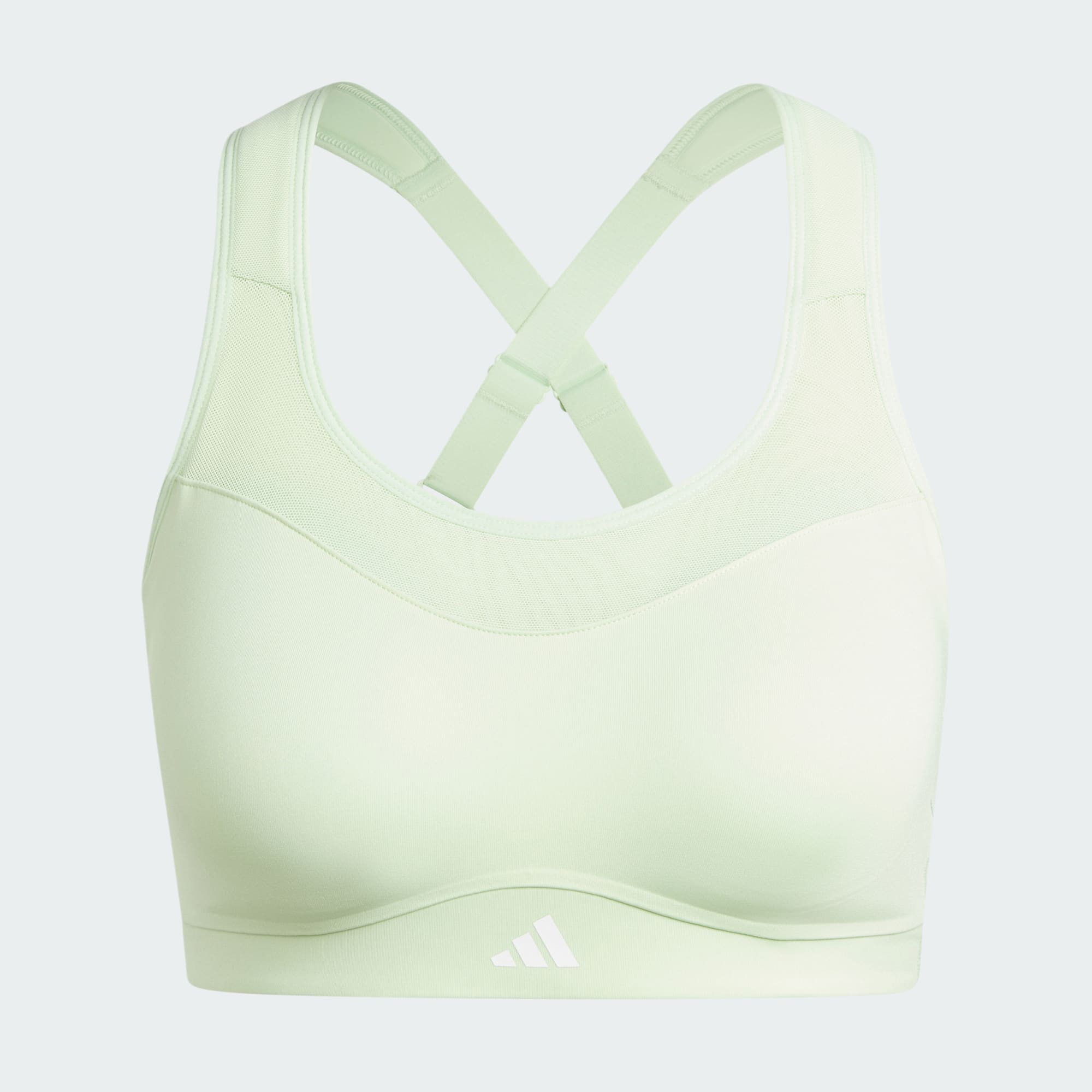 Push through your toughest workouts without missing a beat in this high-support workout bra from adidas. Moisture-absorbing AEROREADY keeps you dry, while mesh panels provide airflow for targeted cooling. Adjustable straps can be worn straight or cross back style. This product is made with at least 70% recycled materials. By reusing materials that have already been created, we help to reduce waste and our reliance on finite resources and reduce the footprint of the products we make.