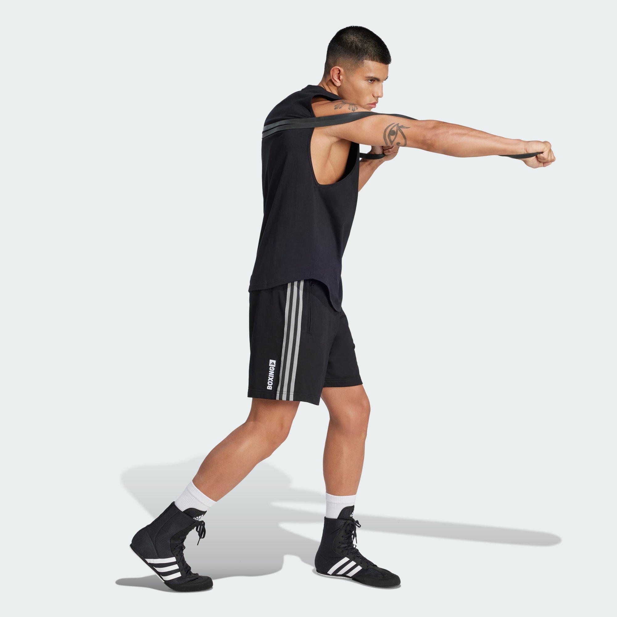 Ce short en coton adidas présente une coupe ample qui favorise la liberté de mouvements à l'entraînement. La taille élastique assure un ajustement confortable et sûr, pour que le short reste bien en place pendant les mouvements les plus dynamiques. Que tu sois boxeur débutant ou aguerri, ce short t'aide à te sentir en confiance lors de tes combats et sessions multisports.