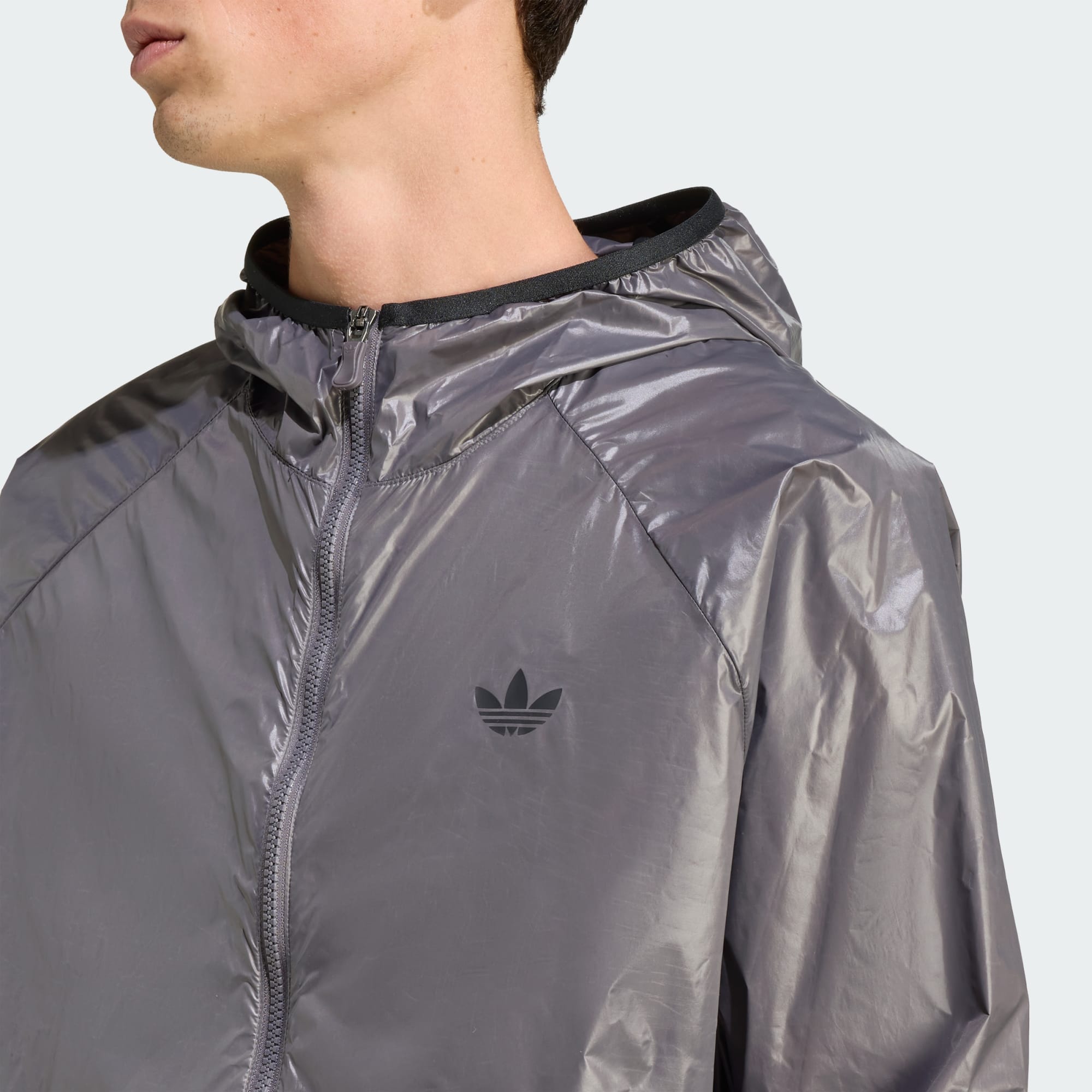 This lightweight adidas windbreaker is a modern staple for unpredictable weather. A full zip and drawcord-adjustable hood let you adjust the coverage as conditions change. A Trefoil on the chest combines with iconic track jacket piping details for classic sport style.