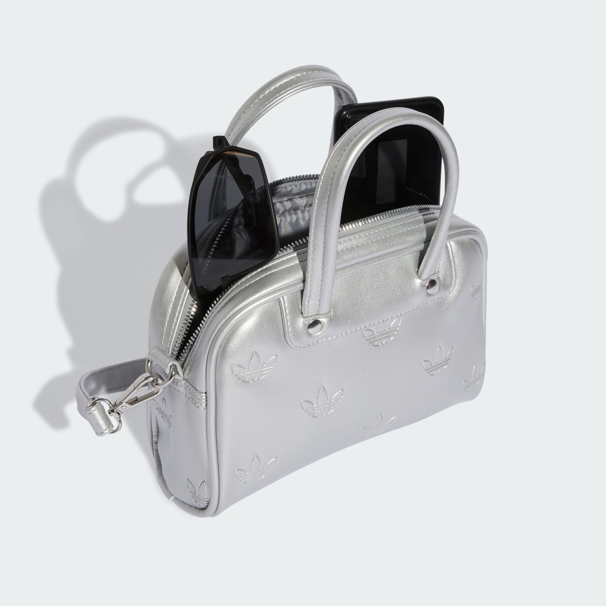 Il compagno perfetto per i viaggi leggeri. Questa mini borsa da bowling di adidas ti consente di portare i tuoi oggetti essenziali con stile grazie alla sua silhouette pulita e al design con monogramma Trifoglio. La struttura in ecopelle aggiunge lucentezza per ogni occasione e la tracolla regolabile e staccabile offre opzioni di trasporto. Chiudi la zip e fai la tua mossa.
