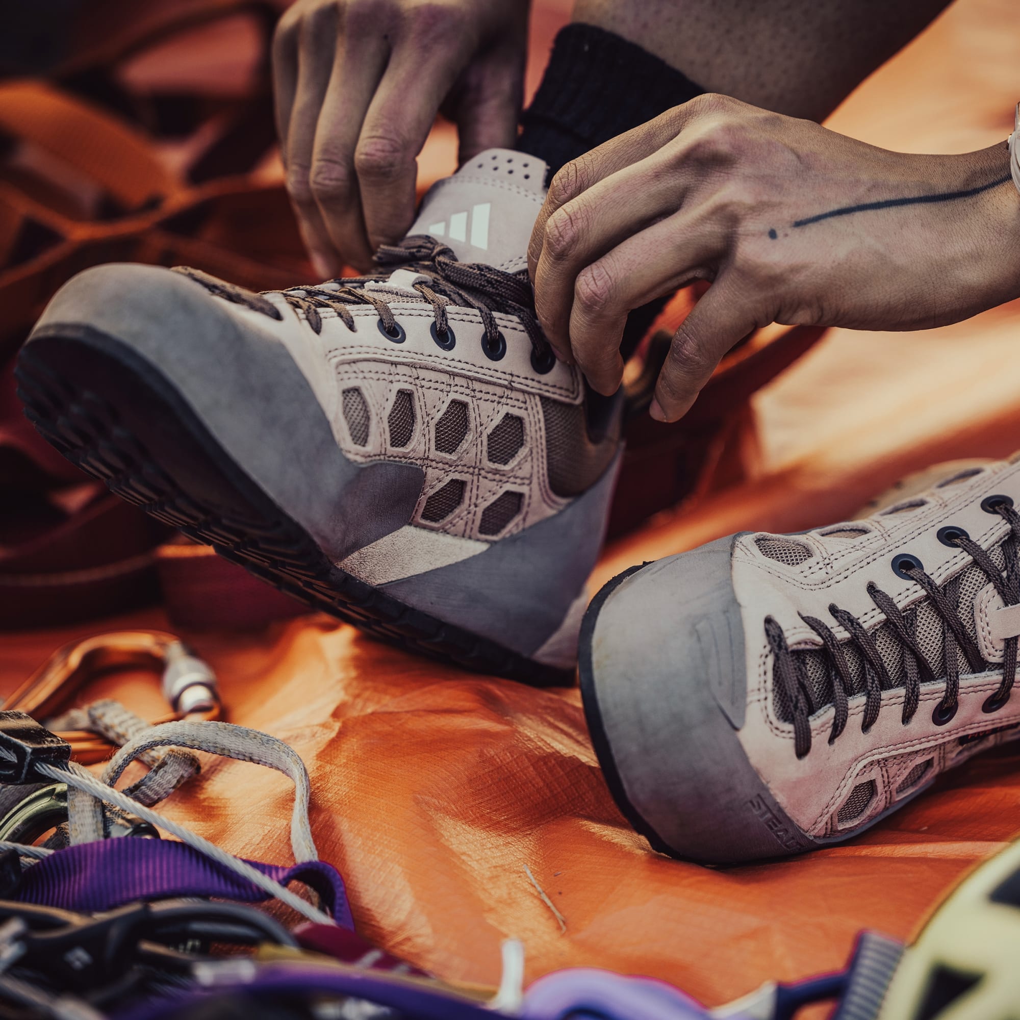Le scarpe Guide Tennie sono realizzate da adidas per chi vuole crearsi il proprio sentiero e affrontare le sfide della camminata e del climbing con sicurezza e facilità. La robusta tomaia in pelle offre un supporto affidabile, mentre la fodera in tessuto mantiene il comfort. L'iconica chiusura con lacci offre una calzata sicura per le superfici più impegnative. La suola in gomma Stealth® Phantom offre un grip affidabile su terreni irregolari. Eredi della storia di adidas performance, queste scarpe sono per chi cerca la libertà nel climbing.